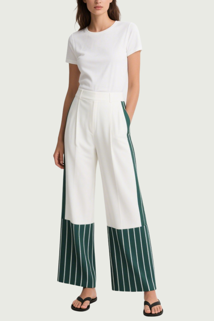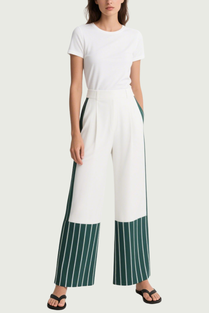Women’s Color-Blocked Patchwork Unique Trendy Wide-Leg Pants