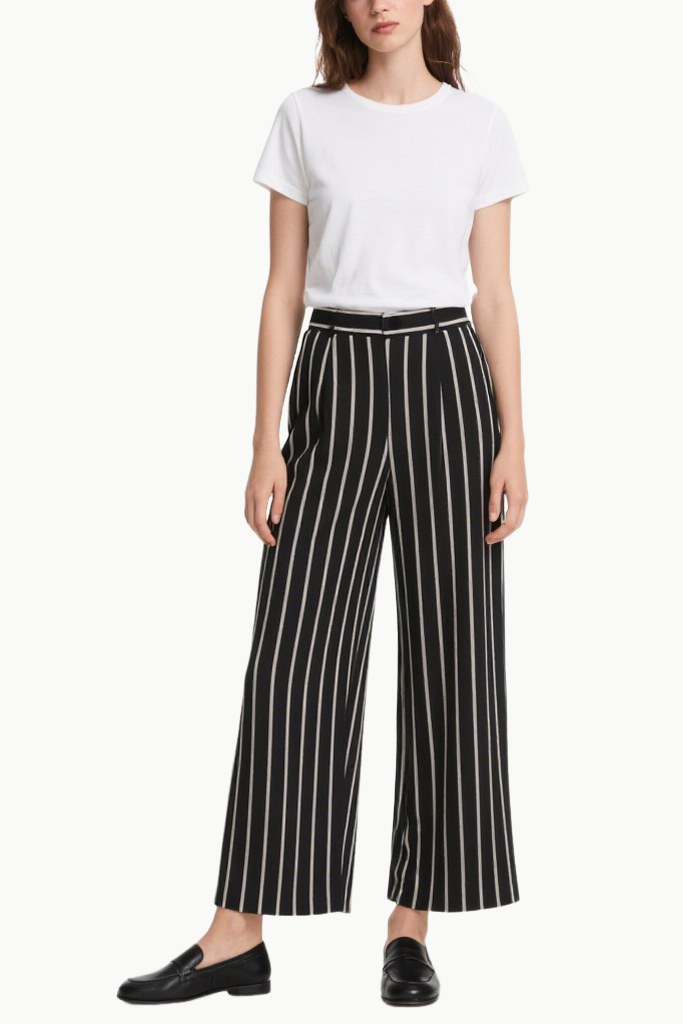 Women’s Classic Striped Commute Wide-Leg Pants