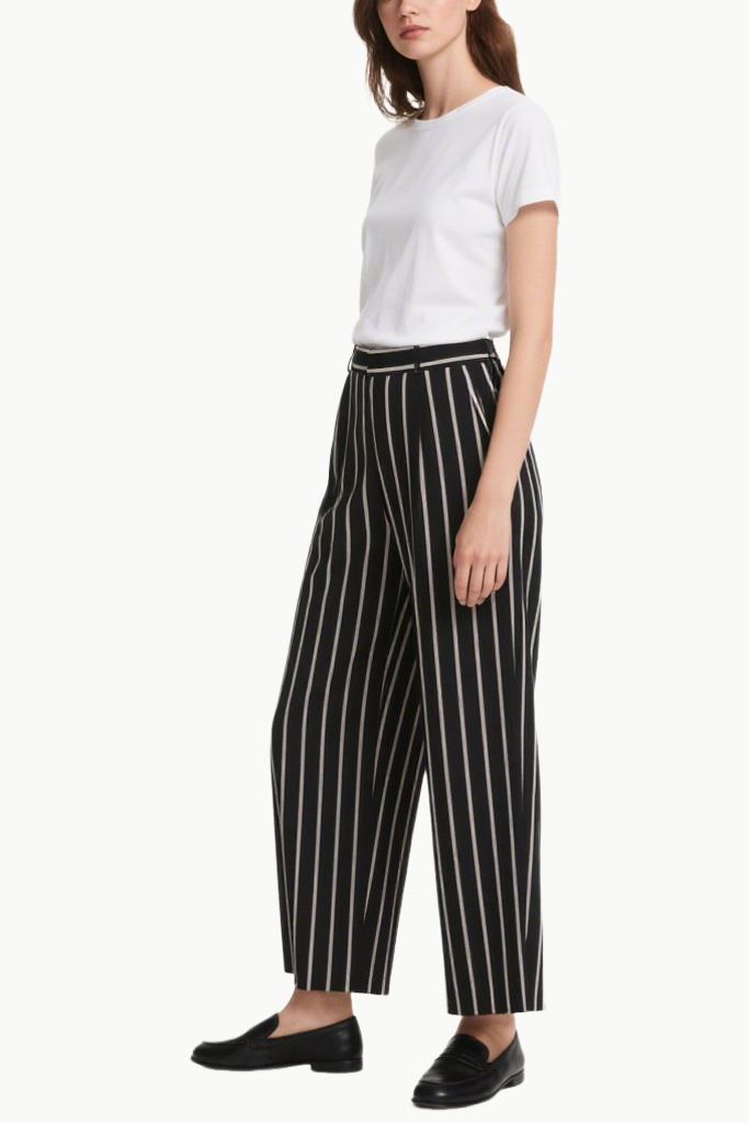 Women’s Elegant Fine-Striped High-Waisted Wide-Leg Pants
