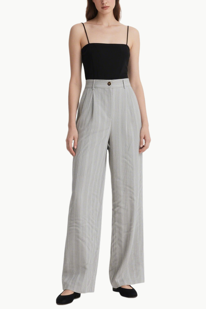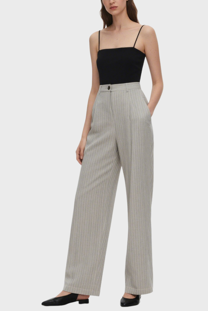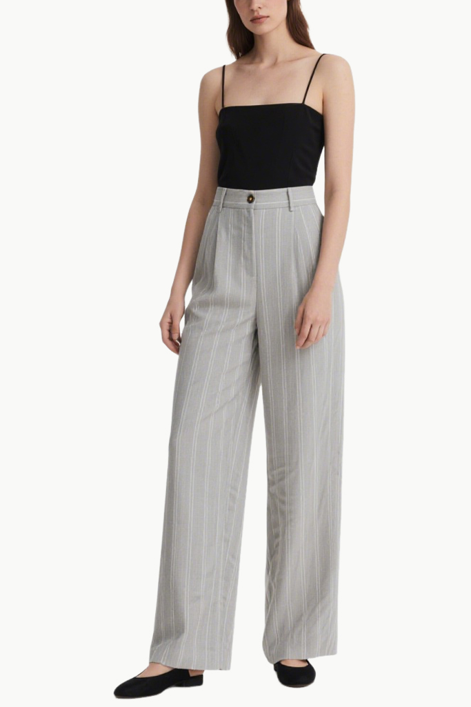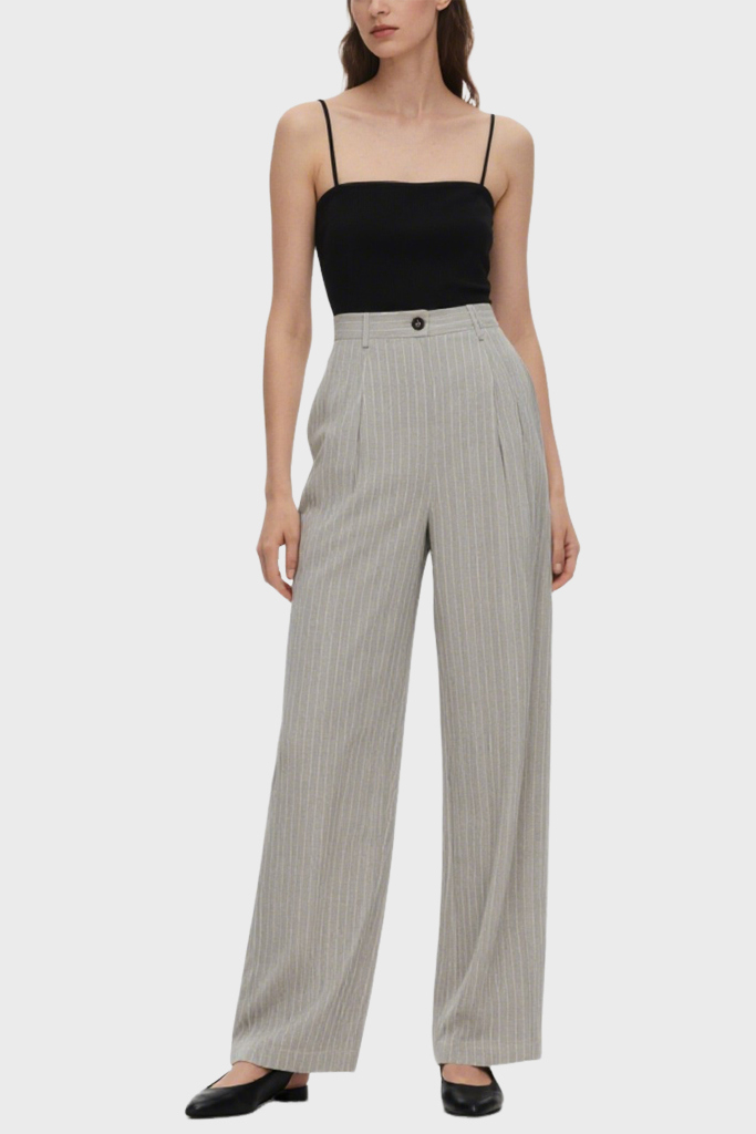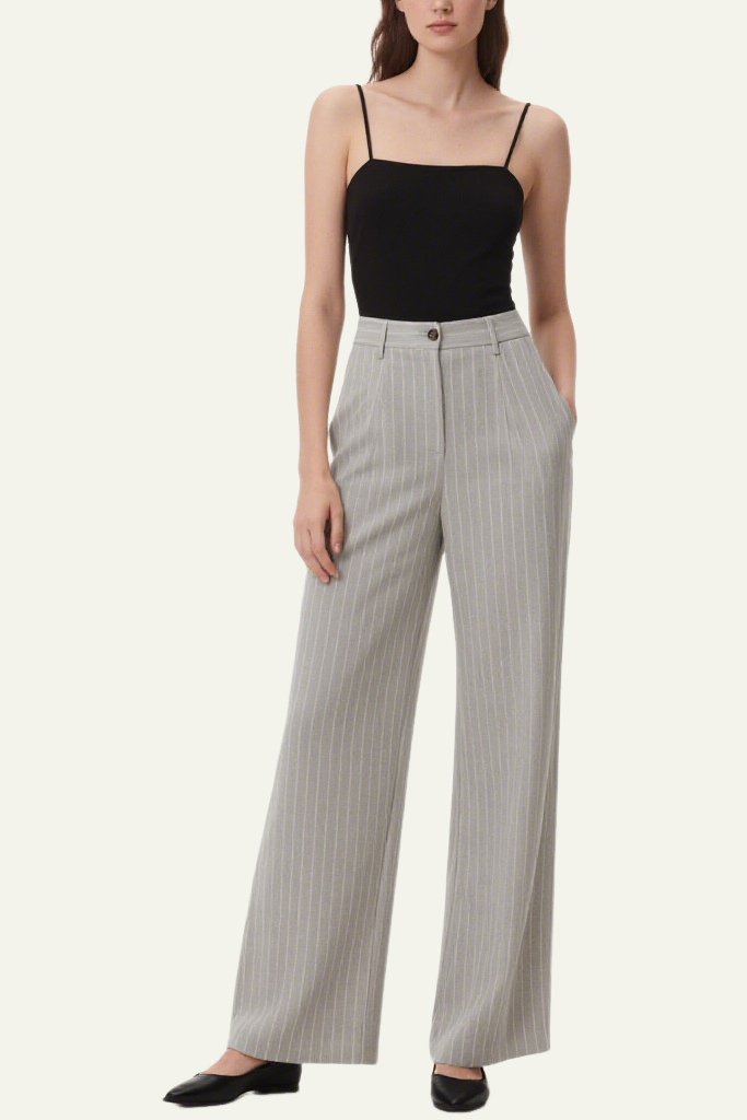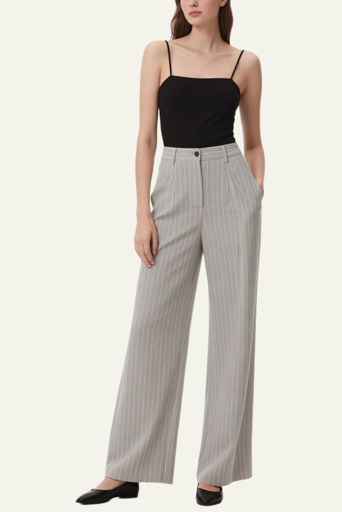 Women’s Minimalist Fine-Striped Casual Wide-Leg Pants