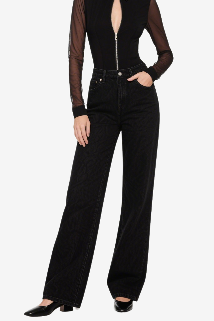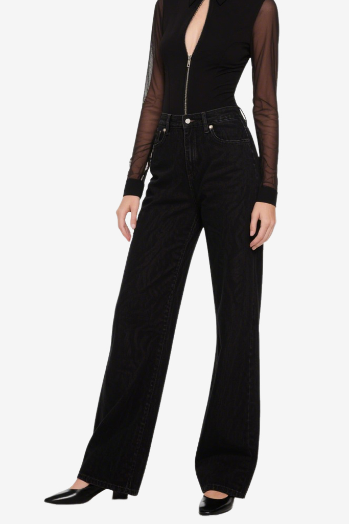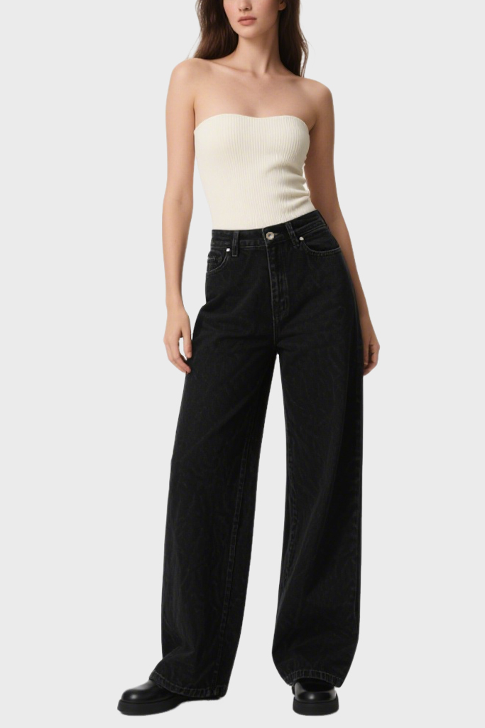 Women’s Temperament Slim High-Waisted Denim Wide-Leg Pants