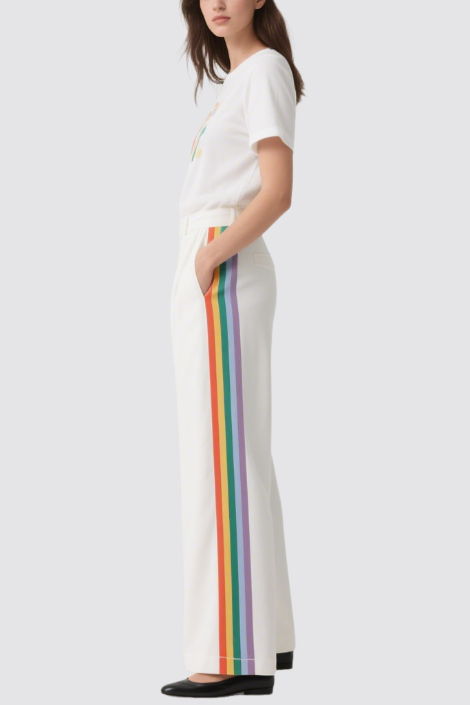Women’s Retro Fashion Striped Design Wide-Leg Pants