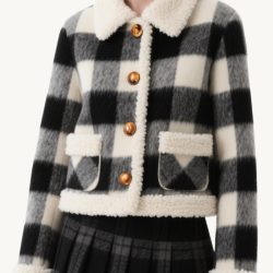 Be the first to review “Women’s Black and White Plaid Faux Shearling Collar Jacket”