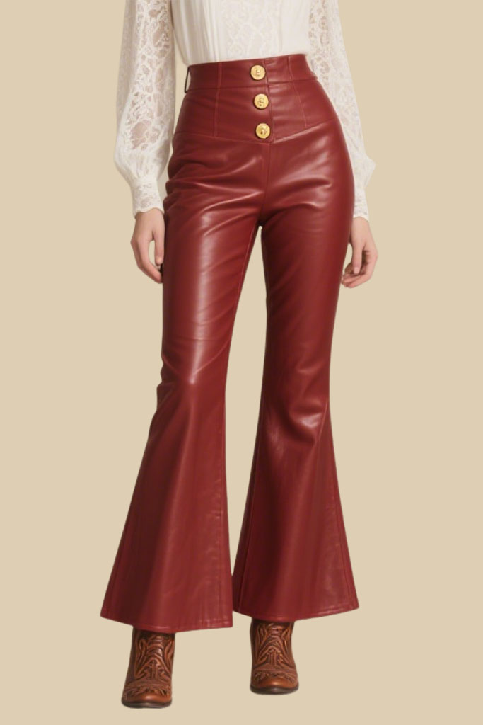 Women’s Retro Gold Button Slim Fit Flared Suit Pants