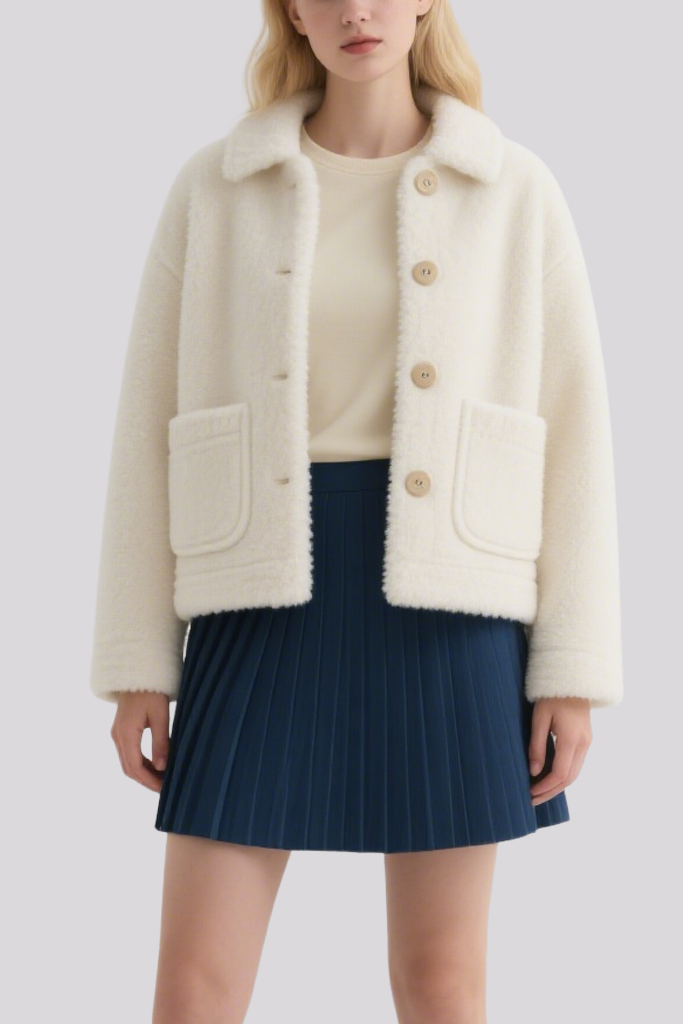 Women’s Soft Faux Shearling Button Up Short Coat for Casual Winter