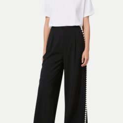Women’s Unique Button-Decorated Wide-Leg Pants