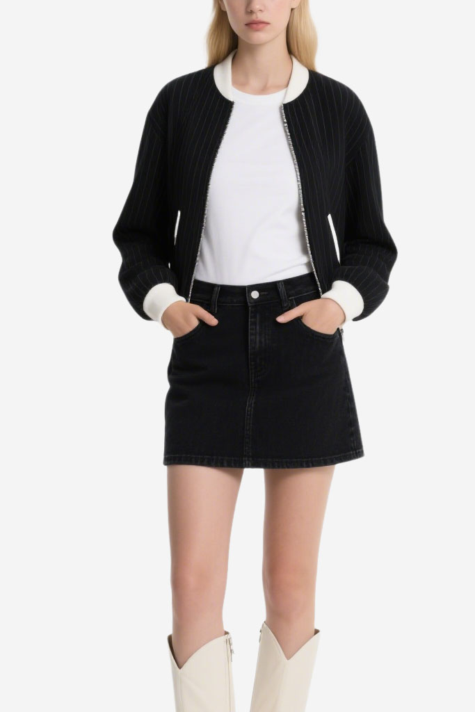 This meticulously designed women’s jacket blends contemporary style with practicality, creating a stylish and comfortable look for the modern woman on the go. Crafted from high-density woven or soft knit, the jacket features a special surface treatment for a subtle grain or sheen, creating a wrinkle-resistant, abrasion-resistant feel while maintaining a lightweight feel.